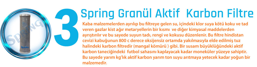 Spring su arıtma cihazları içerisinde bulunan ileri teknoloji filtre sistemi ile şebeke suyunu içilebilir sağlıklı bir suya çevirir. Sudaki ince ve kalın tortuları,pas,çamur,kireç ve bakterileri temizleyerek suyunuzu saf bir su haline getirir. Mineral filtreleri ile de suyunuzun +ph derecesini arttırarak hayatınıza enerji ve sağlık sağlar.